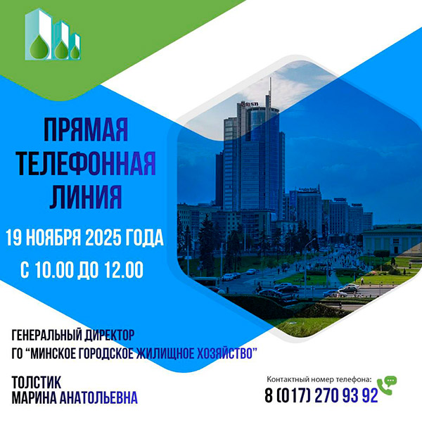 12.02.2025 «прямую телефонную линию» проведет директор КУП ЖКХ Первомайского района г.Минска Рудь Сергей Николаевич. Задать вопросы можно будет с 15.00 до 17.00 по телефону 8017 342 00 75.
